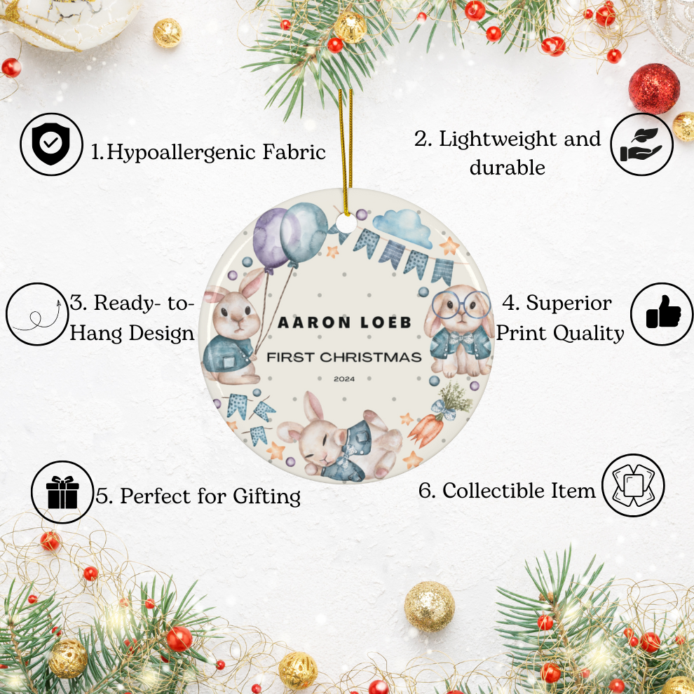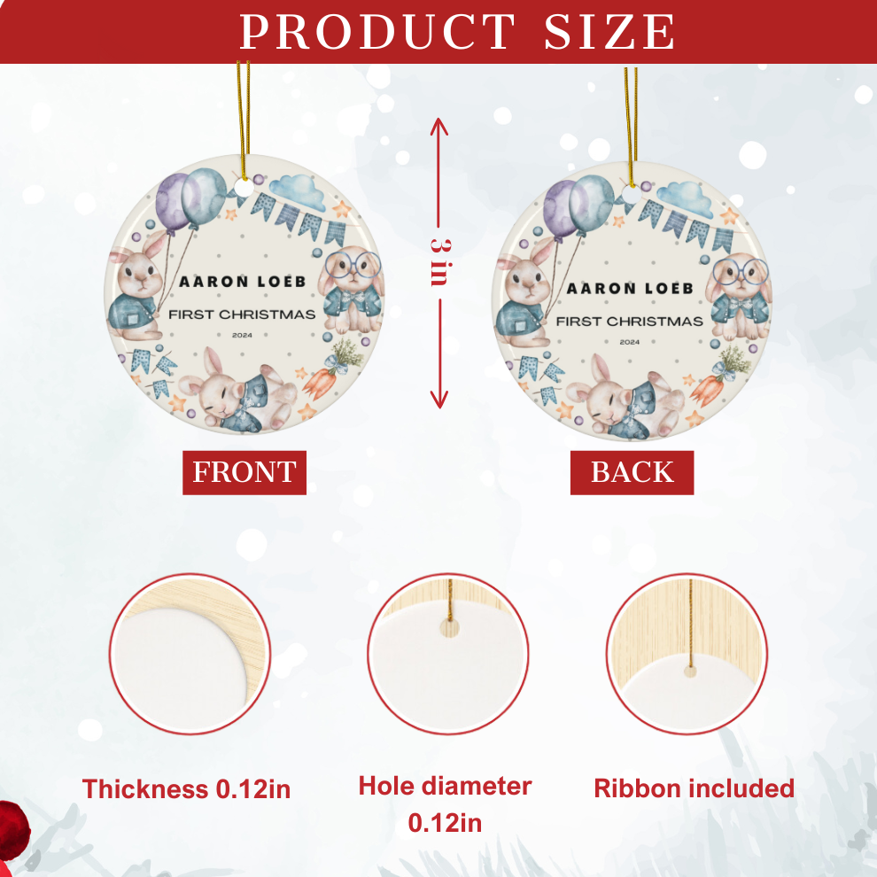 Celebrate your little one’s first holiday season with the 2024 Personalized Baby's First Christmas Rabbit Decoration Circle Ceramic Ornament. This beautifully crafted keepsake is designed to commemorate the joy of your baby’s first Christmas. Made from high-quality ceramic, it measures 3 inches in diameter and 0.12 inches thick, offering both elegance and durability.