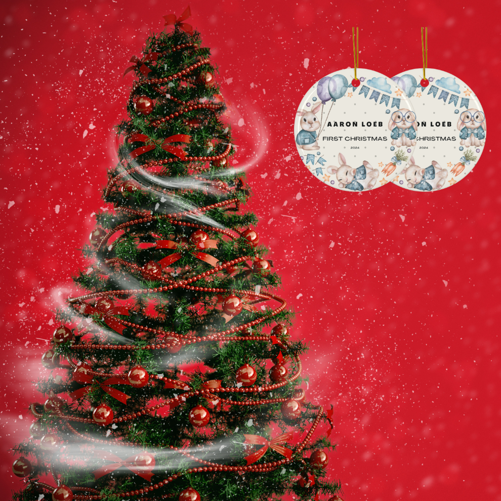 2024 Personalized Baby's First Christmas Rabbit Decoration Circle Ceramic Ornament