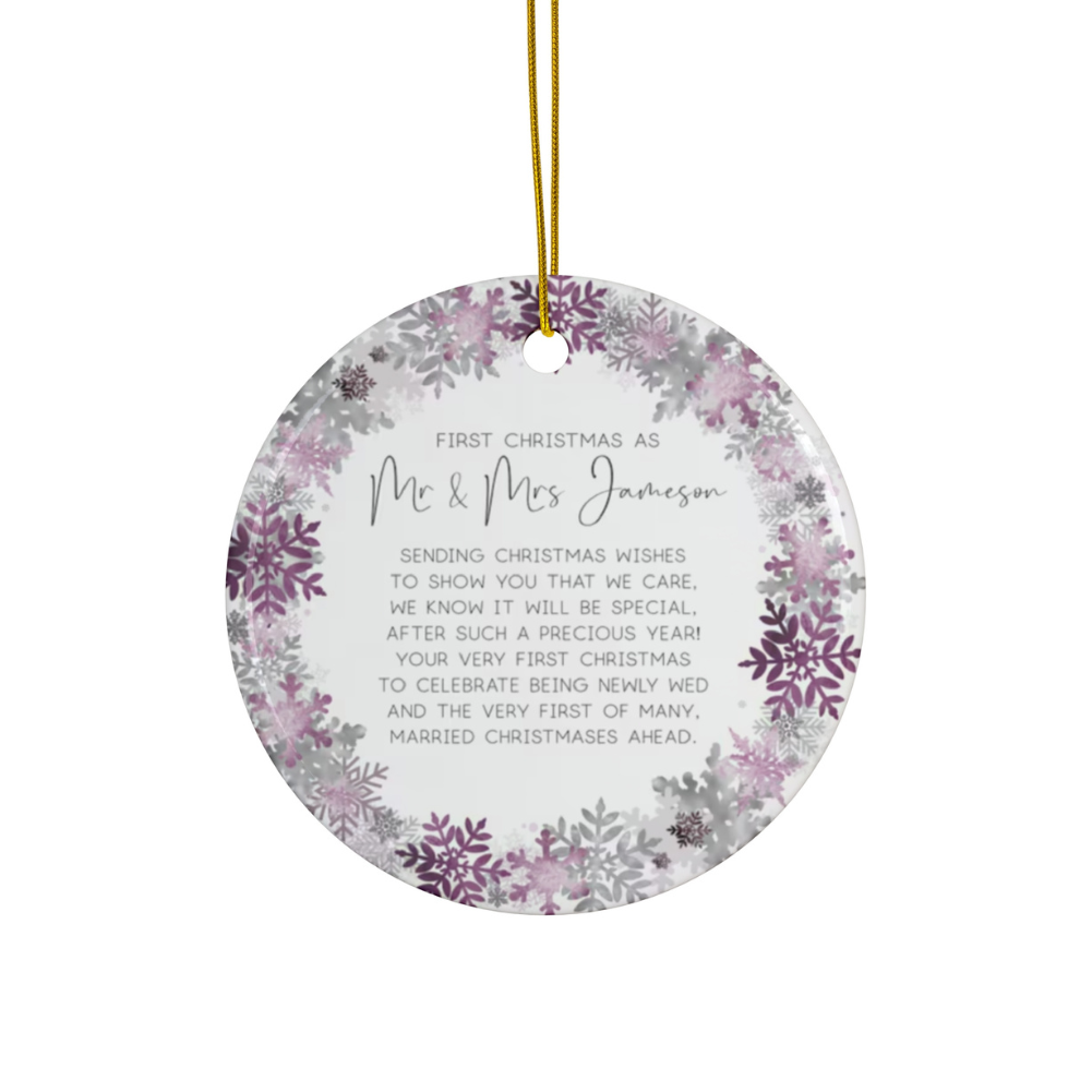2024 Personalized Romantic First Christmas Married Circle Ceramic Ornament