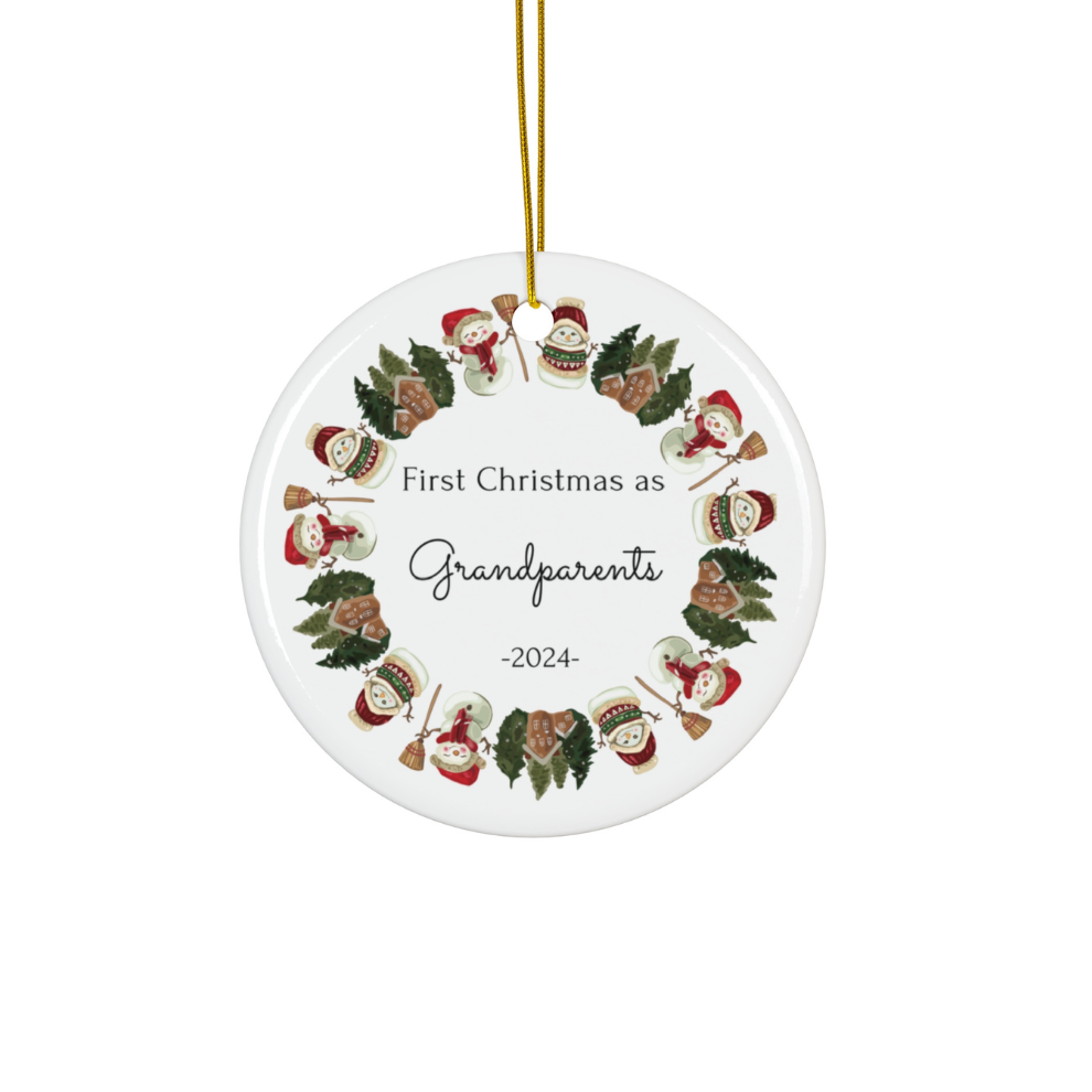 Celebrate our first holiday season together with this enchanting 2024 Personalized Grandparent Christmas Ornament - a heartwarming keepsake designed to cherish the magic of this special time in your new life. Handcrafted from high-quality ceramic, this elegant round ornament measures 3 inches in diameter and boasts a sturdy 0.12-inch thickness, blending strength with sophistication. Its pre-drilled 0.12-inch hole ensures effortless hanging, accompanied by a charming string for instant display. This thoughtful gift perfectly captures the essence of our love and serves as a poignant reminder of my pride in watching you grow into a wonderful young man.
