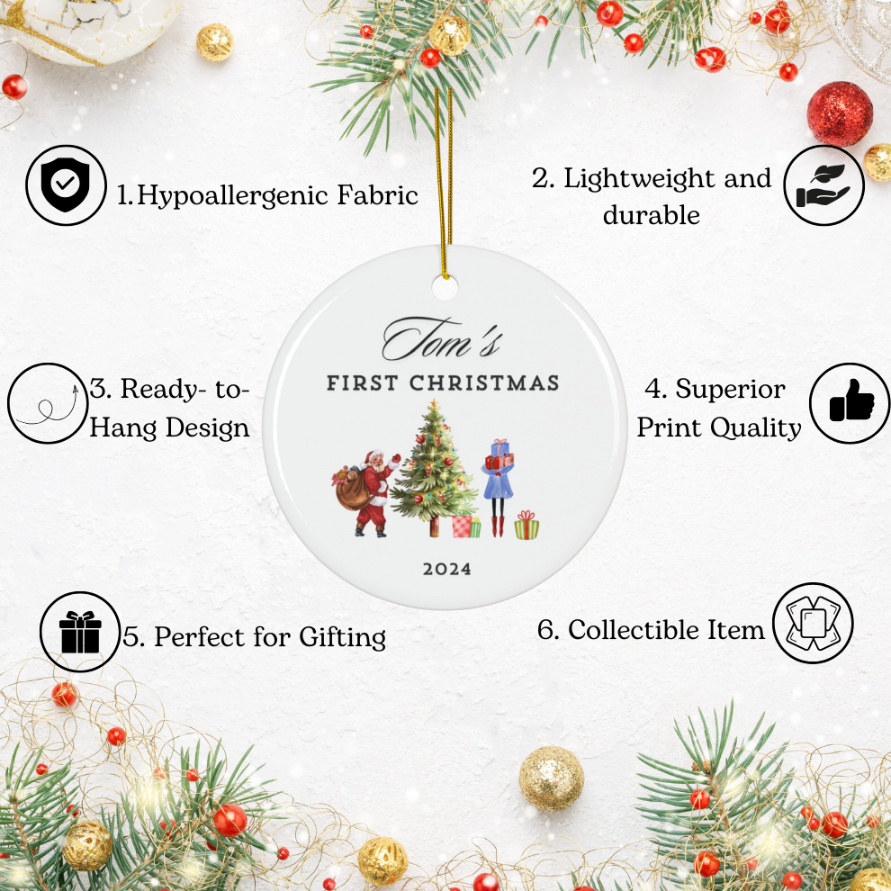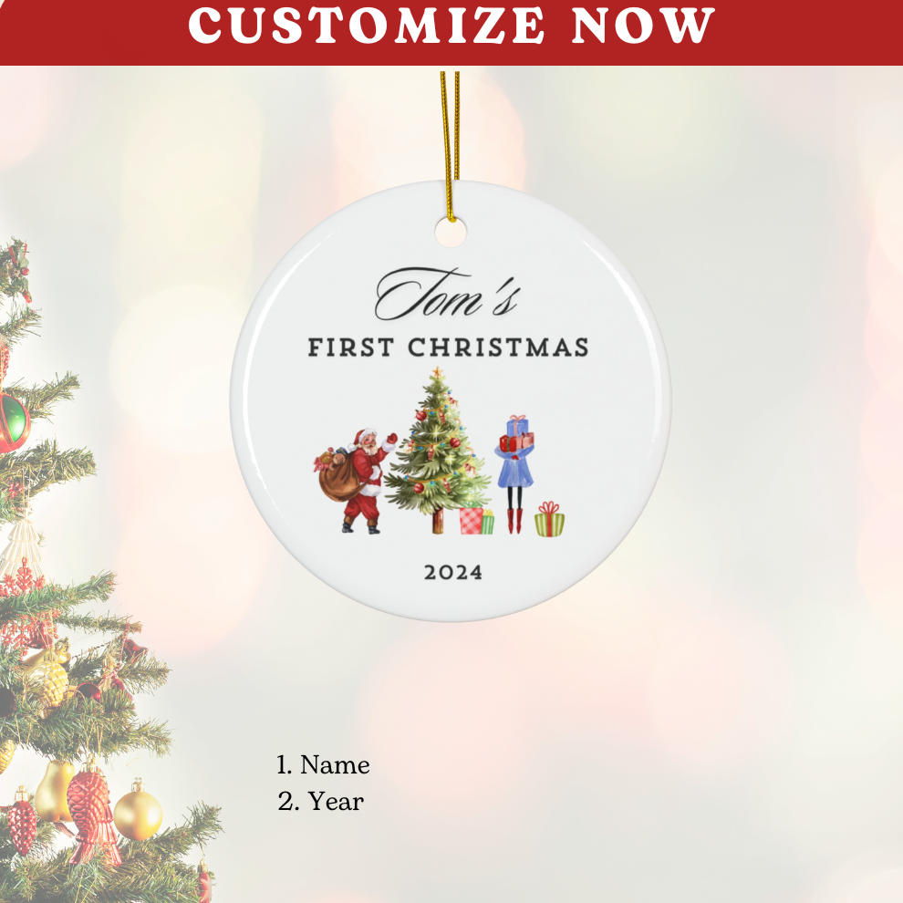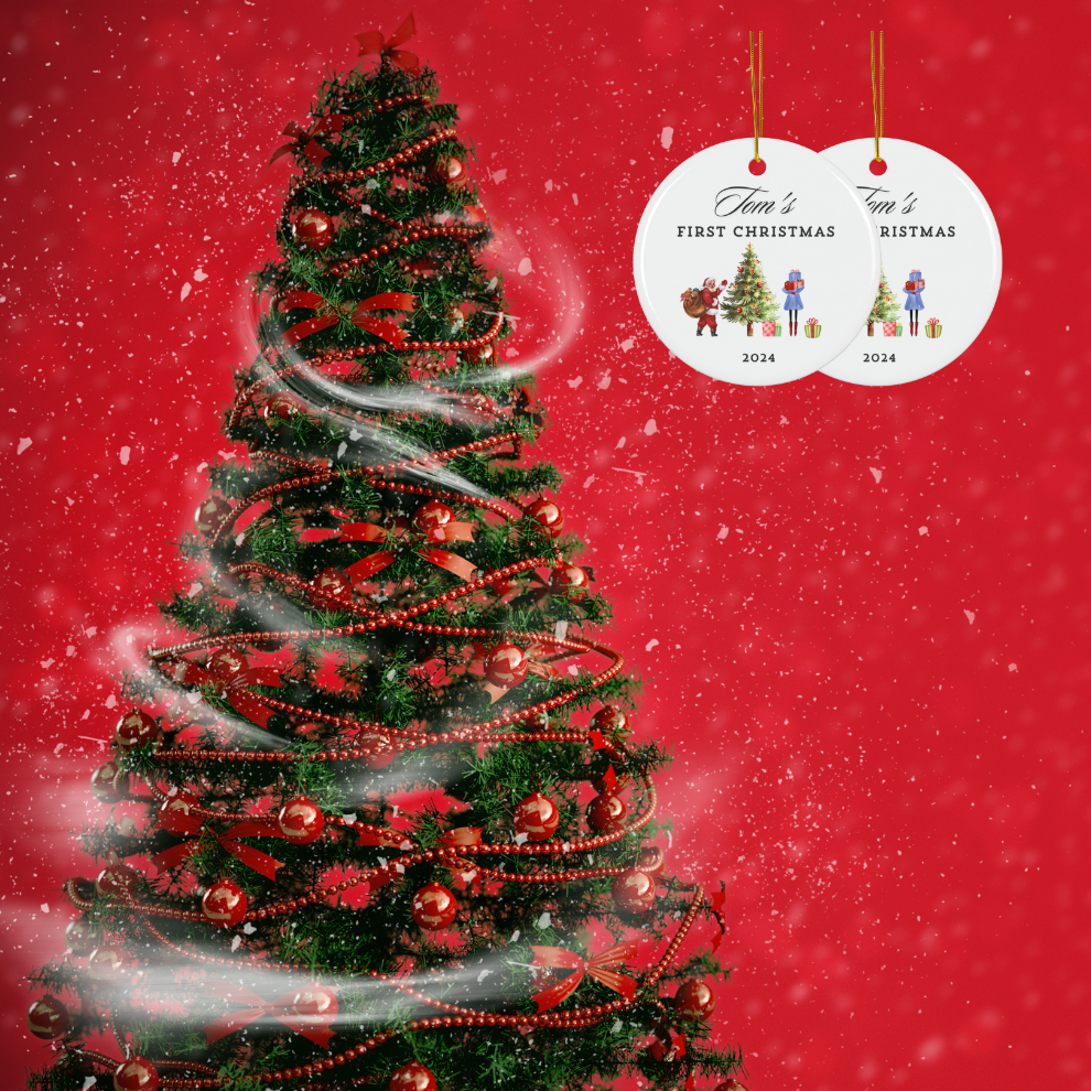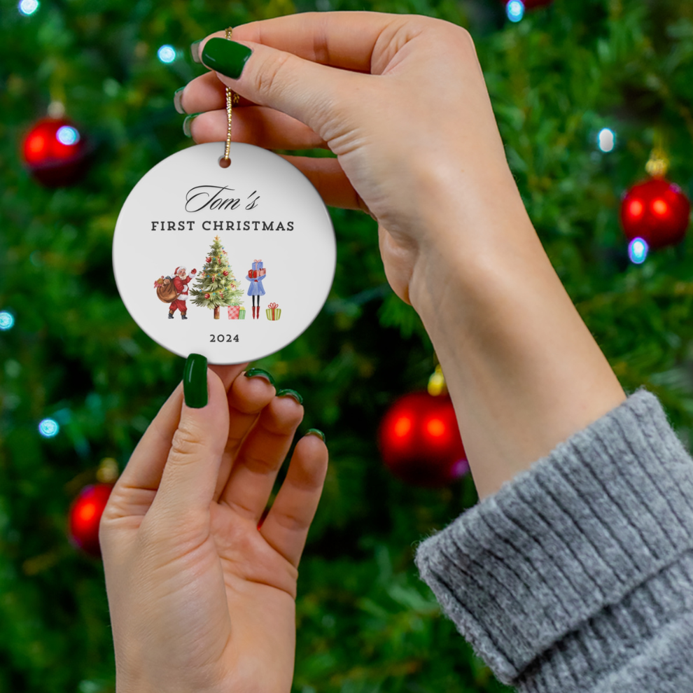 2024 Personalized Baby's First Christmas Circle Ceramic Ornament