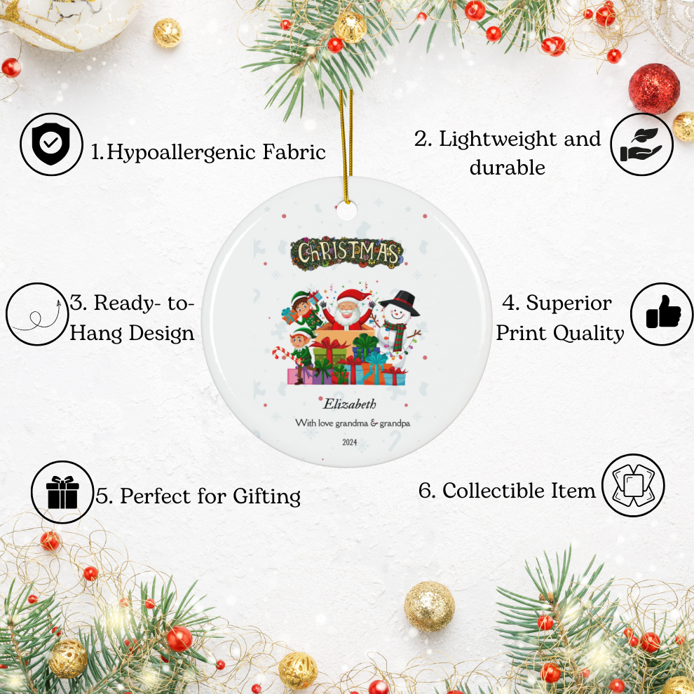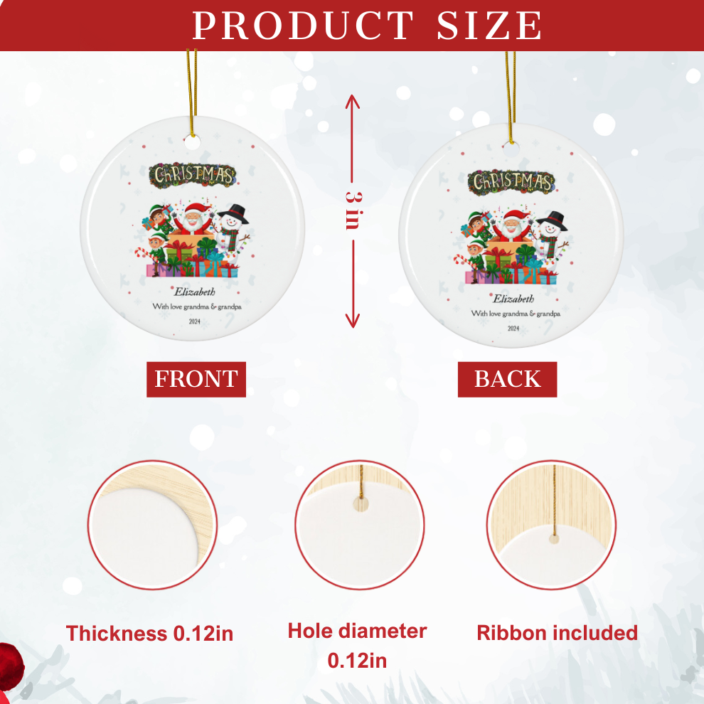 Celebrate this holiday season with a 2024 Personalized Granddaughter Christmas Ornament, a heartfelt keepsake crafted to honor the joy of your granddaughter’s first Christmas. Made from premium ceramic, this round ornament measures 3 inches in diameter with a sturdy 0.12-inch thickness, offering both elegance and durability. Designed with a pre-drilled 0.12-inch hole and decorative string, it’s easy to hang and display on any tree. Whether as a gift for your beloved granddaughter or a charming addition to your own decor, this Granddaughter Ornament is the perfect way to mark this special milestone.