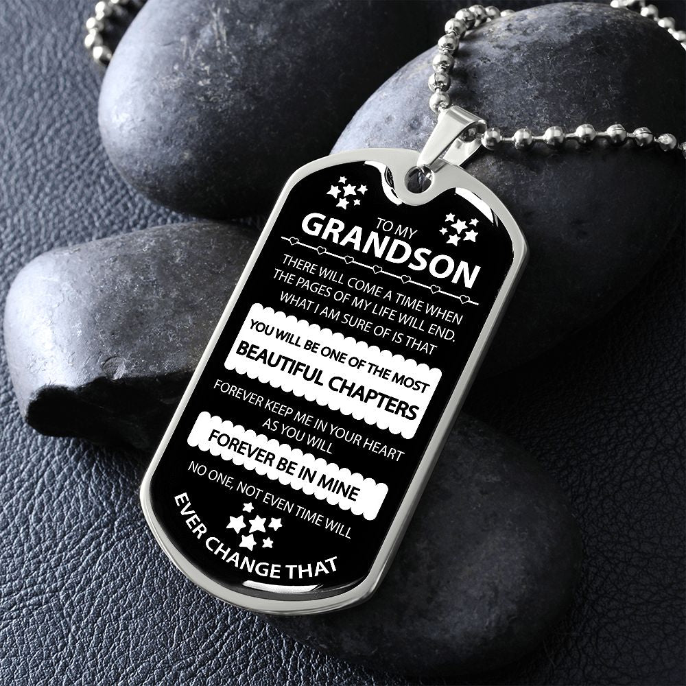 Grandson Dog Tag, Gift For Grandson, Inspirational Dog Tag Necklace, Custom Military Men's Dog Tag