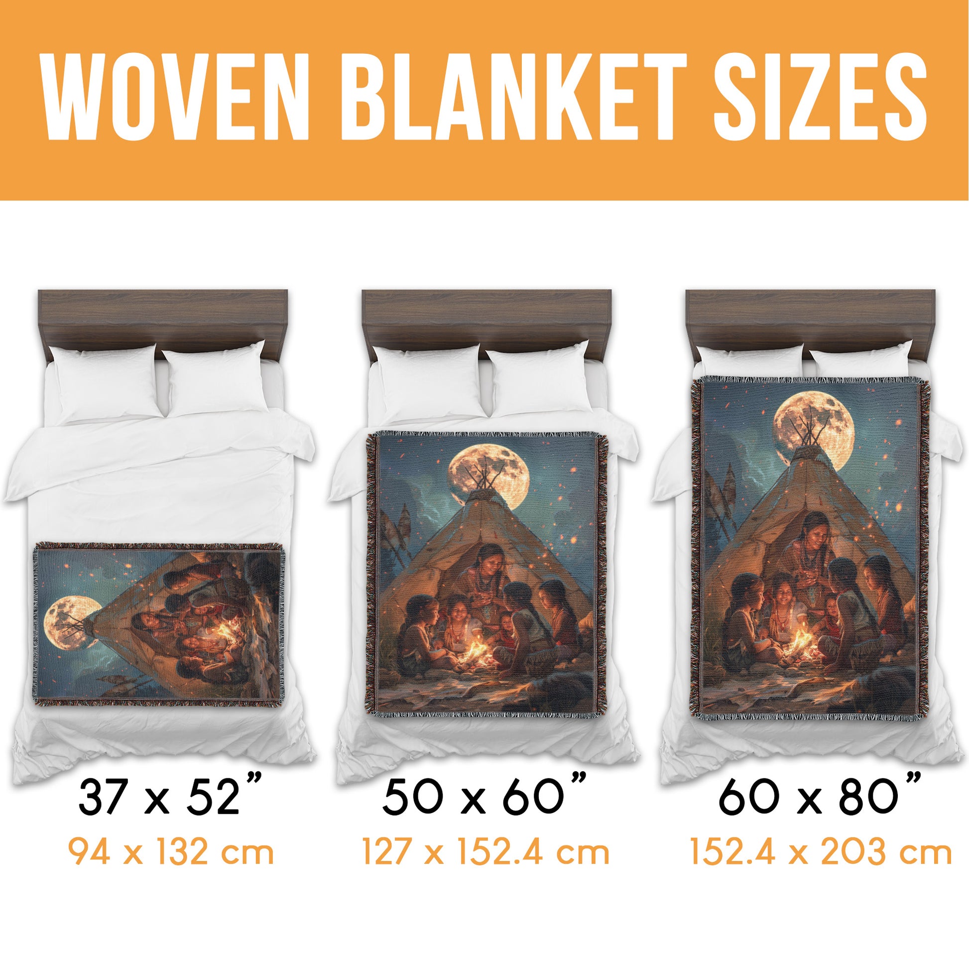 Step into a world of enchantment with our Mom’s Moonlight Woven Blanket! This captivating throw captures a magical moment of a Native American mom telling stories to her children inside a teepee, gathered around a glowing fire under the light of a full moon. Perfect for those who cherish cultural heritage and the timeless art of storytelling, this blanket adds a touch of wonder and warmth to any space. Crafted from 100% cotton and expertly woven for a soft, breathable, and durable finish, it’s ideal for cozying up on chilly evenings, draping over your couch, or gifting to someone who loves meaningful traditions. The fringed edges enhance its rustic charm, making it a versatile piece for both decor and comfort. Wrap yourself in the magic of a Native mom’s storytelling with this stunning woven blanket, and let the glow of the moon and the warmth of the fire inspire your cozy moments.