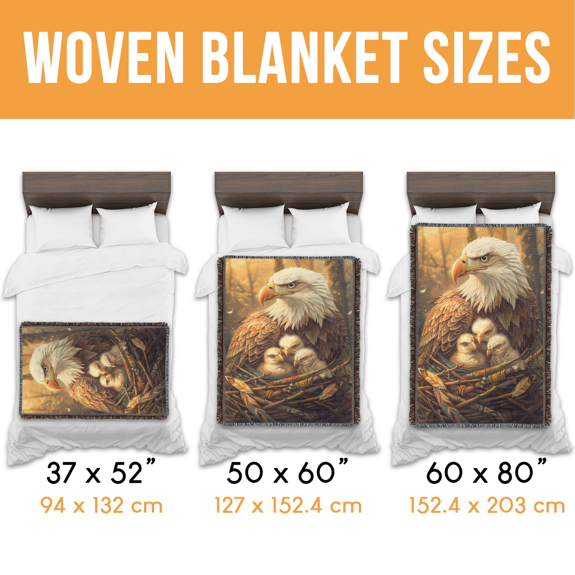 Celebrate the essence of maternal love this Mother’s Day with our Mother Eagle’s Nest Woven Blanket! This heartwarming throw captures a tender moment of an eagle mother warmly sheltering her three eaglets in a cozy nest, set against a serene forested background with soft, warm lighting. Perfect for honoring the nurturing spirit of moms, this blanket symbolizes the protective and loving bond between a mother and her children, making it an ideal Mother’s Day gift. Crafted from 100% cotton and expertly woven for a soft, breathable, and durable finish, it’s ideal for cozying up on chilly evenings, draping over your couch, or displaying as a piece of art. The fringed edges enhance its rustic charm, making it a versatile piece for both decor and comfort. Wrap yourself or a special mom in the loving imagery of an eagle mother sheltering her three eaglets with this stunning woven blanket, and let the spirit of Mother’s Day shine through your cozy moments.