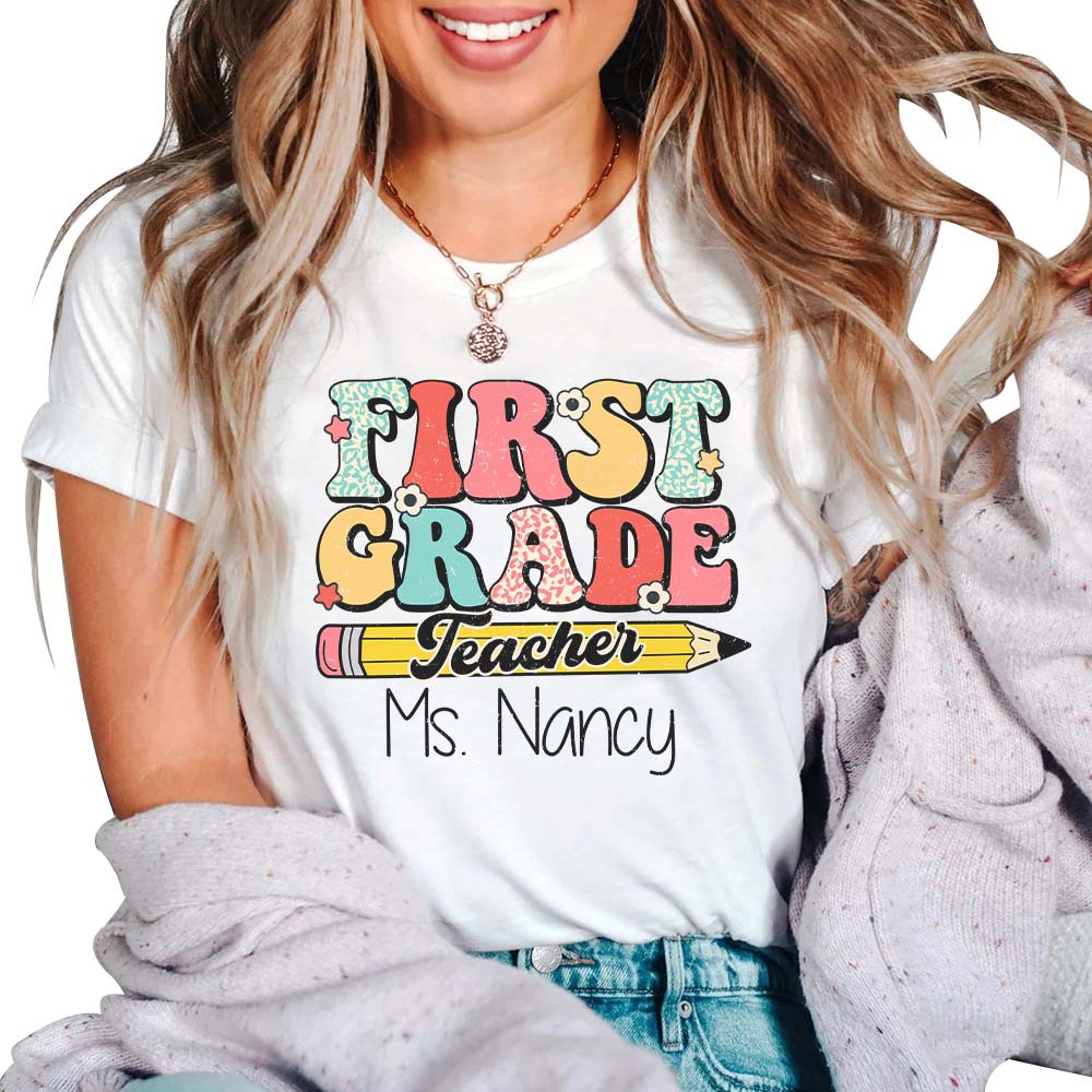 Personalized First Grade Teacher Shirt, Custom Teacher Tshirt, Teacher Shirts For Women