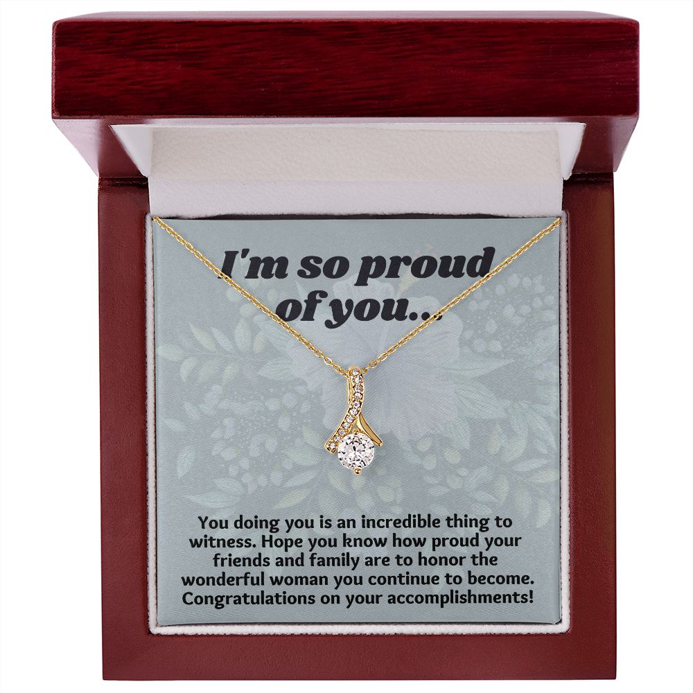 Imagine her reaction when she opens this stunning gift! The Alluring Beauty necklace features a petite ribbon shaped pendant that is sure to dazzle your special someone. Whether it's a birthday or anniversary, make sure to get her a gift she will love for years to come.